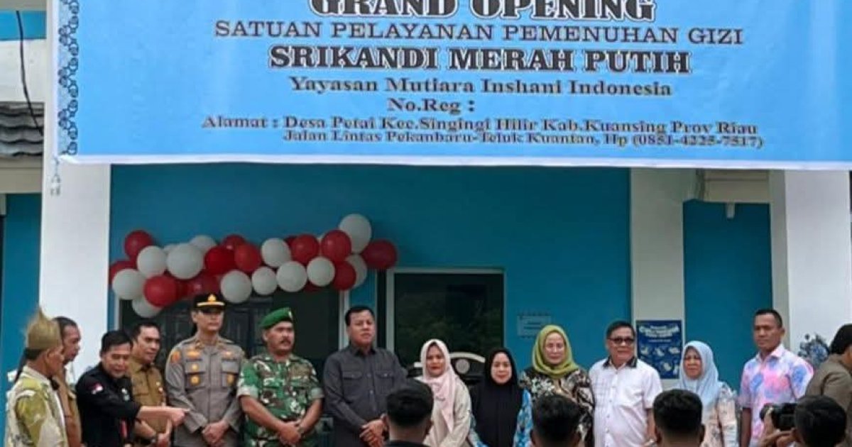Kuansing - Bupati Kuansing Dr. H. Suhardiman Amby Ak. MM, meresmikan satuan pelayanan pemenuhan gizi (SPPG) SRIKANDI MERAH PUTIH program makan bergizi gratis (MBG) Yayasan MUTIARA INSHANI INDONESIA di Desa Petai, Kecamatan SingingiHilir, Kabupaten Kuantan Singingi provinsi Riau. Selasa, (20/1/26).